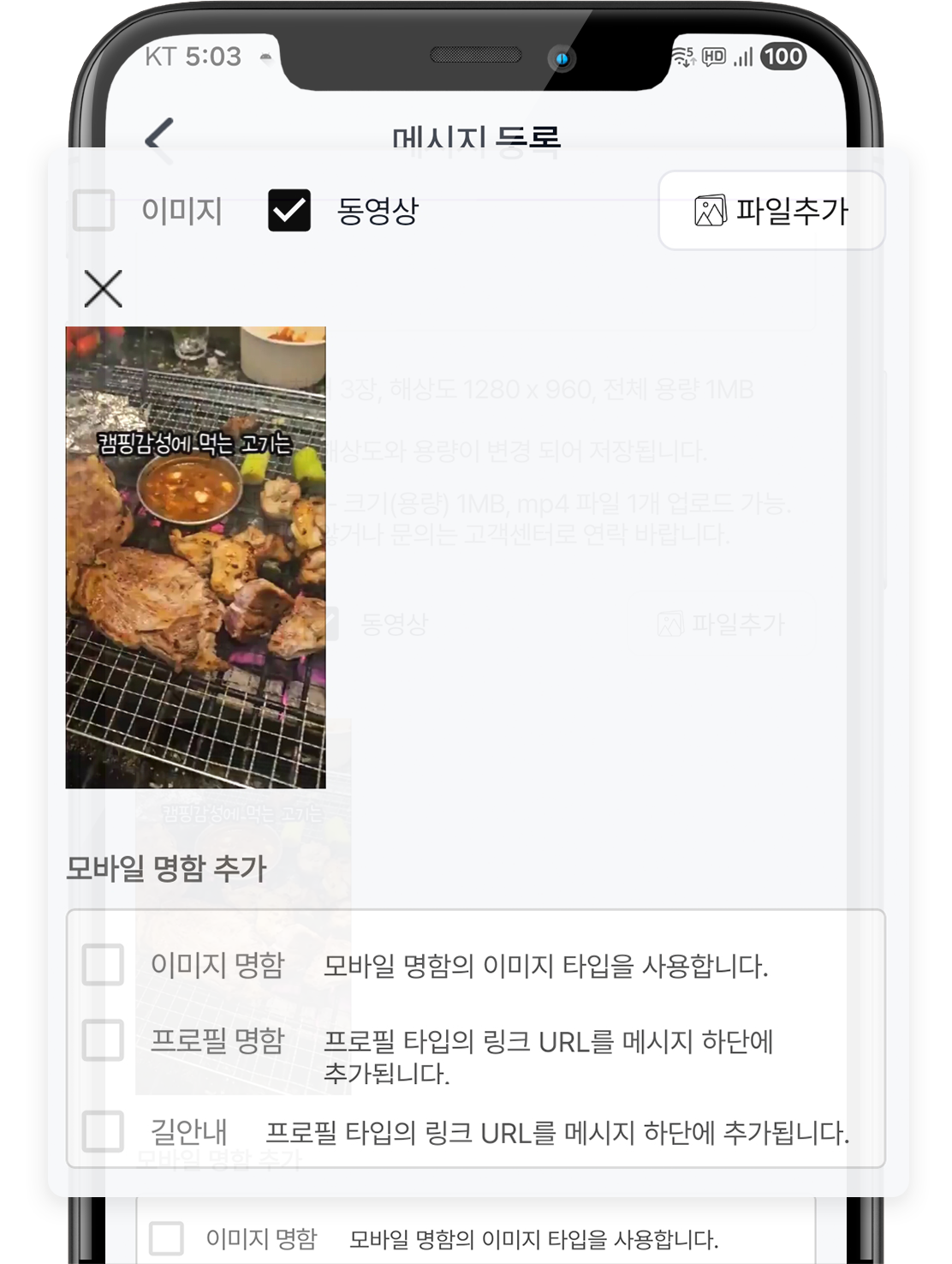 콘텐츠를 동영상 메시지에 첨부 발송