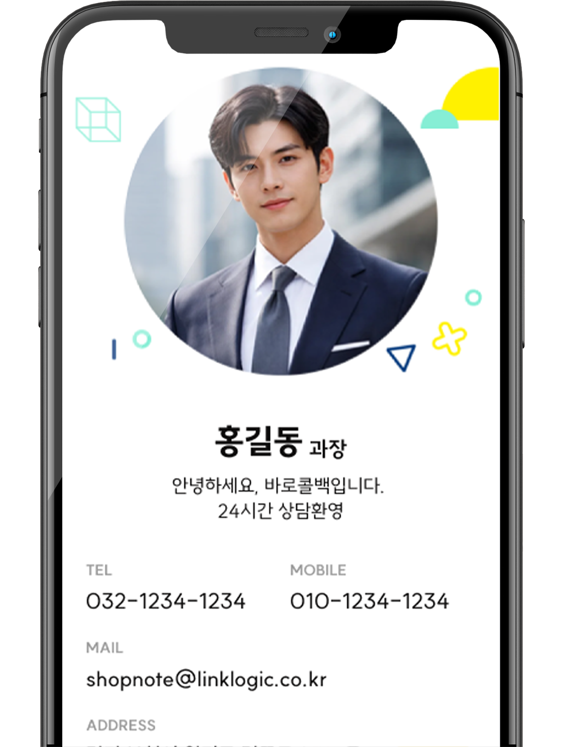 이미지 명함 – 이름(업체명), 휴대전화, e-mail, 500자 이내 프로필 등 입력만으로 바로콜백이 제공하는 템플릿으로 자동 제작되는 사진 명함.
